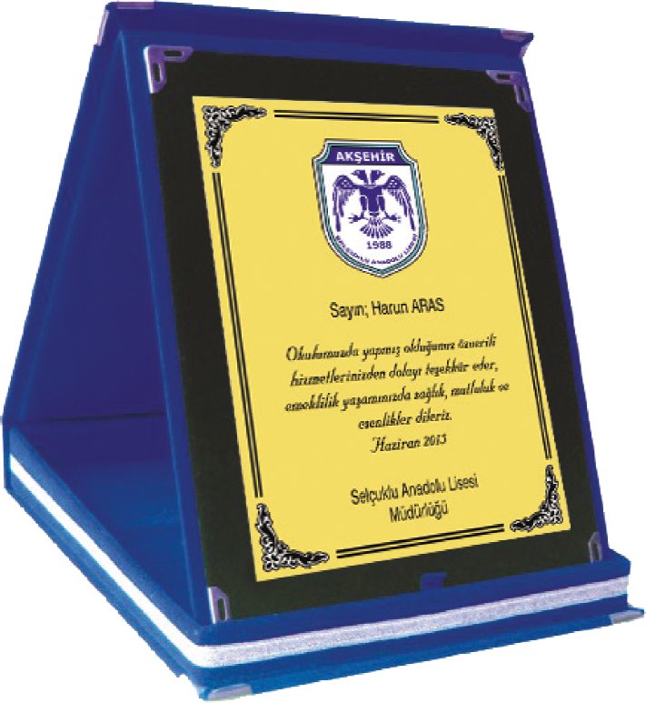 ·  Pleksi ve Kristal Plaketlerde, 50 adet altı için sabit 750 tl alınır, 50 adet üzeri için taraf başına 15,00 tl.dir.