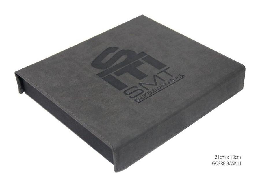 Deri yüzeyli ajanda, defter, usb bellek gibi ürünlere klişeli olarak sıcak baskı makinesinde bu baskı çeşidi uygulanmaktadır.